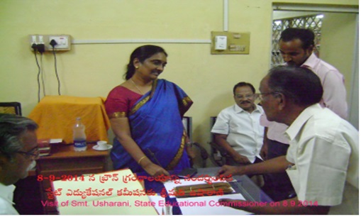 | Visit of Smt. Usharani, State Education Commissioner on 08.09.2014. |
