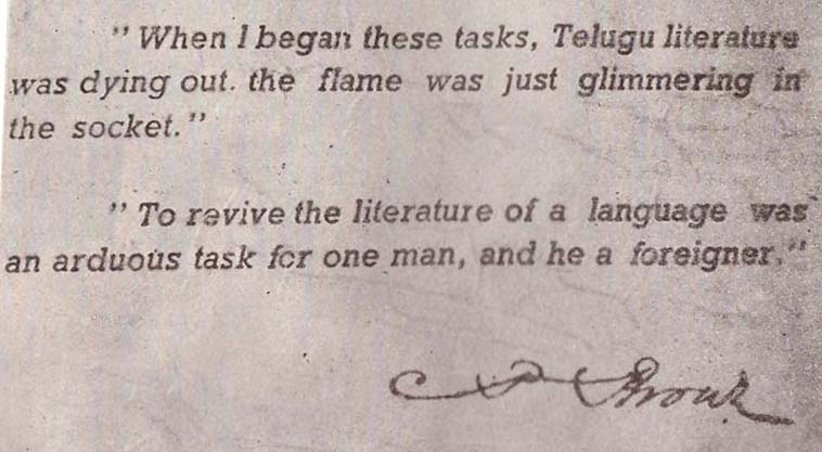 Bought a bungalow at Cuddapah, besides housing his Telugu mss. library, the building provided working space to native pandits who were engaged in preparing the mss. editions of Telugu Kavyas and also commentaries.